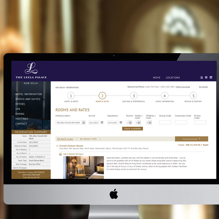 Each hotel is easy to find through clear navigation and each hotel’s site enthusiastically invites consumers to interact and get to know the hotel and its people. Among the special features of The Leela website redesign is the addition of over 1,000 specially shot images to showcase the hotel facilities, from guestrooms to meeting rooms and everything in between. Visitors to the site gain a “sense of place” through this immersive mix of hotel and lifestyle imagery. New content for Offers, Dining, Spa, Weddings and Meetings provide quick overviews and bring pertinent information up several levels, keeping users on a single page. The use of concise, short, and targeted copy helps deliver a user-friendly site that is community focused. The large screen resolution combined with rich technologies pushes interactivity to provide a cutting edge experience that thinks beyond “now”, and looks forward towards tomorrow – putting The Leela at the forefront of authentic Indian luxury. Social Media integration sets the stage for guests to interact with the website and post “likes” and “tweets” from various pages. These features serves all markets; consumers benefit as much as travel agents and meeting planners.